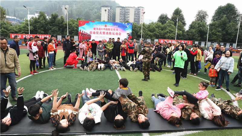 在全國第28個消防日到來之際,由犍為縣消防大隊(duì)主辦、嘉陽集團(tuán)協(xié)辦的犍為縣2019年“11?9”消防宣傳月啟動儀式暨消防運(yùn)動會于11月8日在嘉陽礦區(qū)足球場舉行,來自嘉陽集團(tuán)、川投峨旅的6支代表隊(duì)以及10個家庭參加活動。