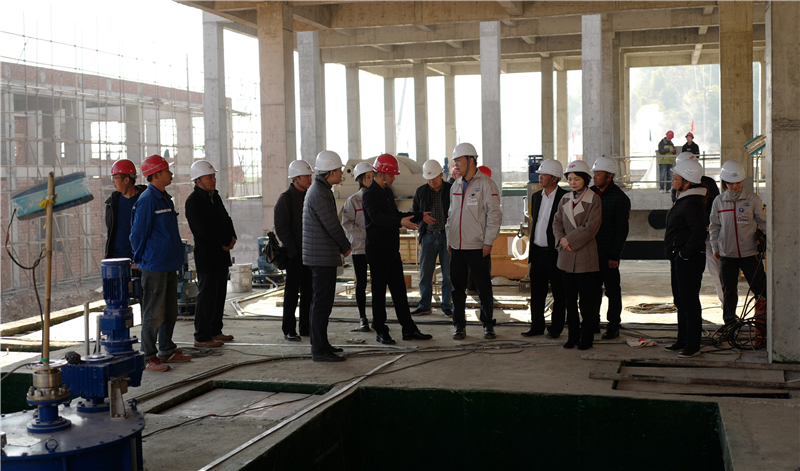 公司總經(jīng)理馬銘偉與中國市政西南設計院高工田偉峰帶領班宏縣長一行沿著工藝管道試水線路逐一視察了各構建物和設備的開啟運行狀態(tài),班宏縣長對一枝山項目進度給與了高度評價。