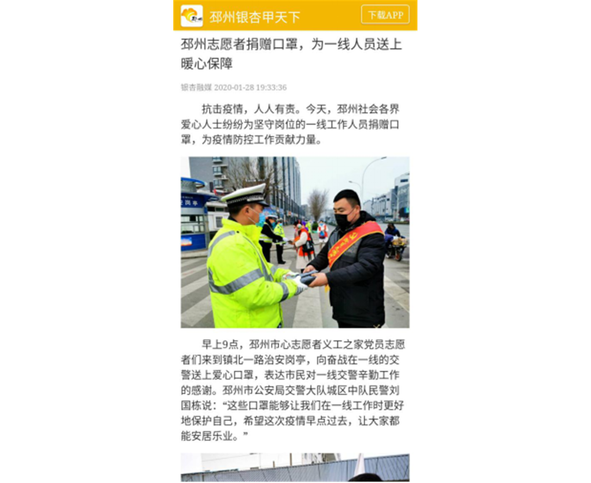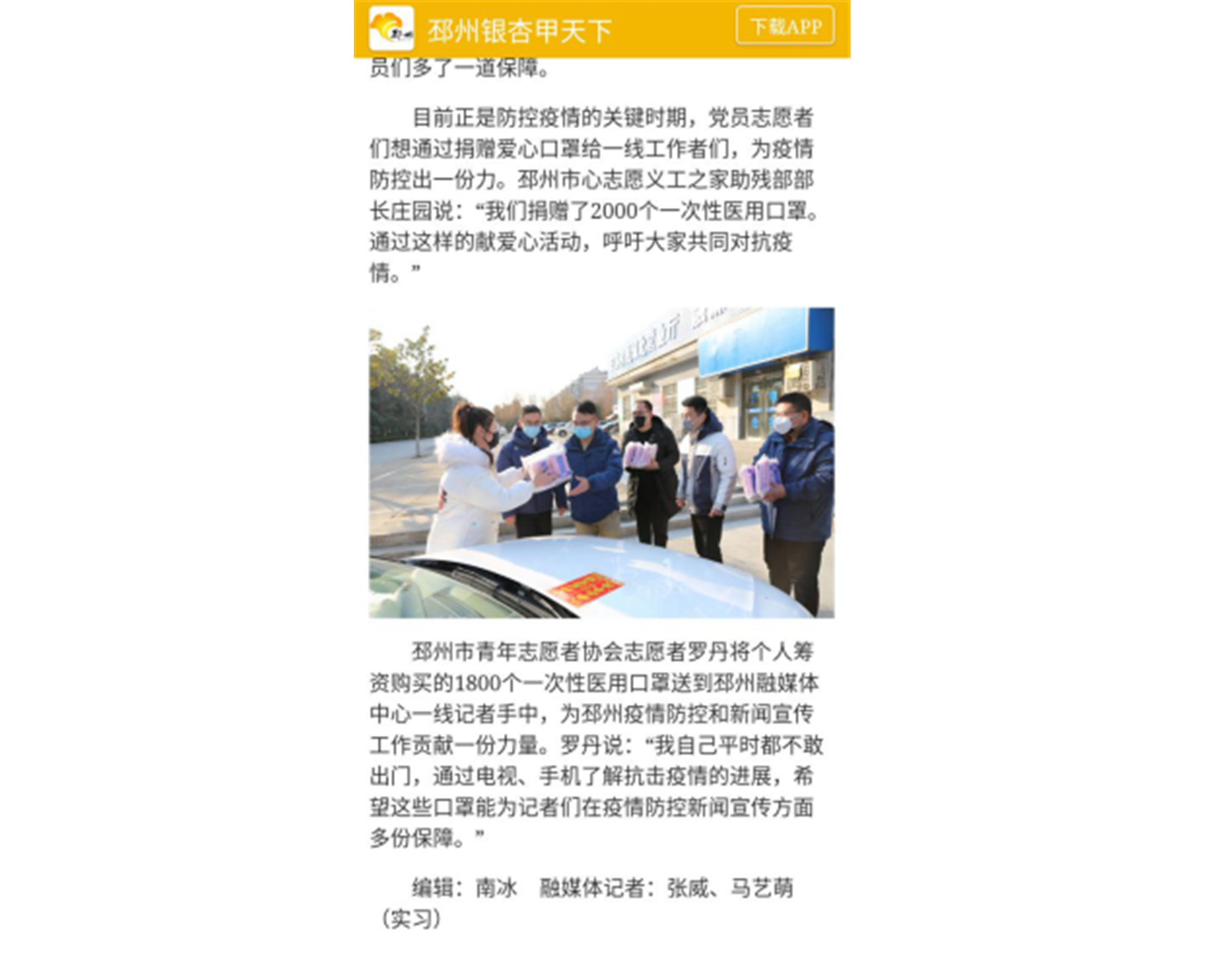 新冠肺炎疫情爆發(fā)后,川投信產(chǎn)所屬智慧華川公司黨員先鋒隊(duì),積極響應(yīng)徐州市邳州志愿者協(xié)會(huì)號(hào)召,第一時(shí)間投入到當(dāng)?shù)匾咔榉揽毓ぷ鳎群笤谮莩菂^(qū)主要道路、居民小區(qū)、藍(lán)天救援隊(duì)?wèi)?yīng)急救護(hù)基地等地,為交通警察、環(huán)衛(wèi)工人、應(yīng)急救護(hù)人員等抗擊疫情的一線工作者送上社會(huì)愛心人士捐贈(zèng)的口罩。智慧華川黨員先鋒隊(duì)熱心公益、前往疫情防控一線志愿服務(wù)的行為受到邳州融媒體中心等地方媒體報(bào)道。