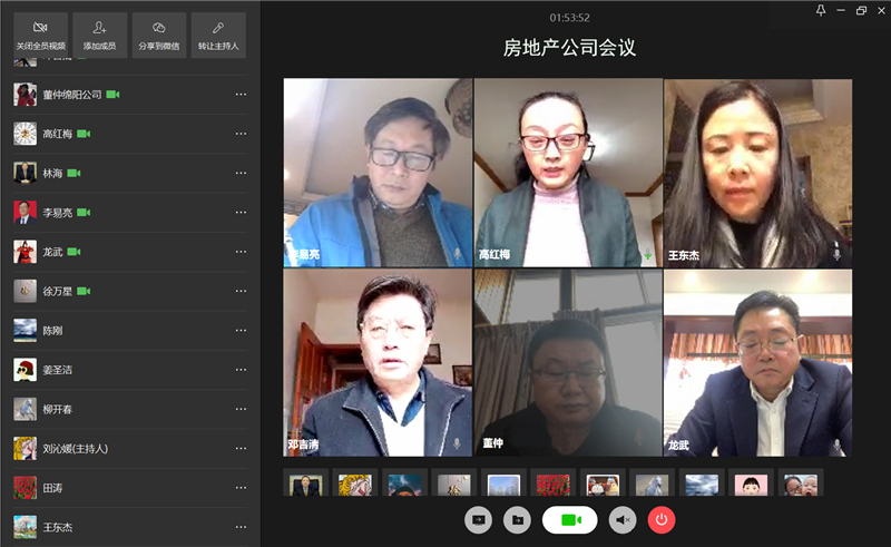 網(wǎng)絡(luò)視頻會(huì)議,科技的力量不是要改變世界,而是在環(huán)境改變的時(shí)候能夠從容應(yīng)對(duì)。房地產(chǎn)公司領(lǐng)導(dǎo)班子帶頭試行網(wǎng)絡(luò)辦公,積極組織相關(guān)人員召開(kāi)各類(lèi)視頻會(huì)議,強(qiáng)化現(xiàn)階段各單位溝通,以最快速度掌握疫情形勢(shì)下公司現(xiàn)階段工作難點(diǎn)和痛點(diǎn),積極謀劃應(yīng)對(duì)方策。2月17日,召開(kāi)了共17人參加的網(wǎng)絡(luò)行政例會(huì),董事長(zhǎng)高紅梅安排部署了七項(xiàng)重點(diǎn)工作;2月18日,公司領(lǐng)導(dǎo)班子帶頭和員工參加了疫情對(duì)房地產(chǎn)企業(yè)的影響及對(duì)策專(zhuān)題培訓(xùn);2月19日,召開(kāi)了共15人參加支委會(huì)和總經(jīng)理辦公聯(lián)席會(huì)議,通過(guò)了七個(gè)議案,并安排了近期重點(diǎn)工作。