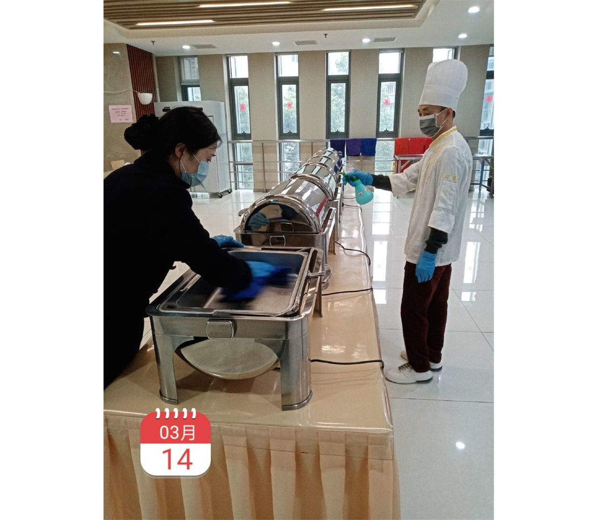 疫情以來(lái),川投佳友物業(yè)密切配合集團(tuán)公司疫情防控小組部署,以專業(yè)能力和科學(xué)的防控手段為集團(tuán)公司辦公地川投大廈筑起的安全保護(hù)屏障貢獻(xiàn)了一己之力。隨著集團(tuán)有序復(fù)工復(fù)產(chǎn)安排,2020年3月13日,接疫情防控小組通知,食堂即將恢復(fù)服務(wù)。食堂須知上對(duì)有限堂食的具體解釋,用餐安排以及用餐座位示意圖,字字句句都傳達(dá)了集團(tuán)疫情防控小組對(duì)恢復(fù)食堂后用餐安全的重視。急業(yè)主所急,分集團(tuán)之憂。在佳友物業(yè)董事長(zhǎng)王賓的部署下,食堂再次進(jìn)行了從內(nèi)廚到就餐區(qū)的徹底消毒;廚師、服務(wù)人員及管理人員所有涉及食堂工作人員都進(jìn)行了再次培訓(xùn)并配備口罩、消毒液等物資。食堂即將正式恢復(fù)服務(wù),在此之前,我們一次次的消毒、一次次的培訓(xùn)、一次次的確保物資,向業(yè)主證明,我們時(shí)刻關(guān)注用餐安全;向集團(tuán)傳達(dá),我們?yōu)榧瘓F(tuán)消除疑慮的決心。