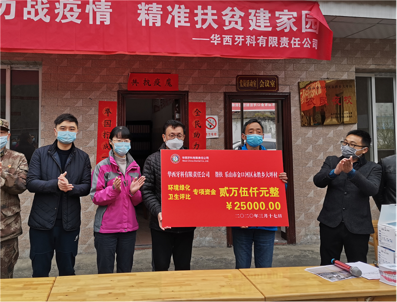 隨后,華西牙科對口幫扶活動開始,本次活動以“齊心協(xié)力戰(zhàn)疫情,精準(zhǔn)扶貧建家園”為主題,分別舉辦了大坪村環(huán)境美化及衛(wèi)生評比競賽活動,環(huán)境美化及衛(wèi)生評比頒獎儀式和專項資金捐贈儀式,以及新冠病毒預(yù)防及疫情期間的口腔保健知識講座。華西牙科向村民們送來了關(guān)懷和問候,并捐贈防疫物資和幫扶資金2.5萬元。