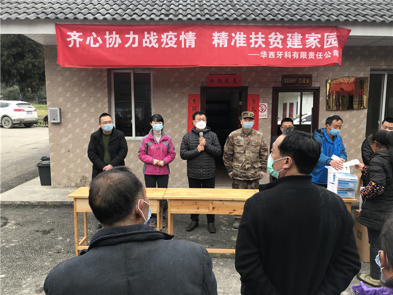 新冠肺炎疫情發(fā)生以來,華西牙科認(rèn)真履行國企政治責(zé)任,堅決貫徹落實省委省政府和集團公司決策部署,密切關(guān)注定點幫扶對象樂山市金口河區(qū)永勝鄉(xiāng)大坪村的疫情防控工作情況,心系大坪村父老鄉(xiāng)親們的生產(chǎn)生活。2020年3月17日,華西牙科總經(jīng)理關(guān)志強、黨委副書記、紀(jì)委書記金晶、辦公室主任朱倫倫、四川口院頜面外科護士長吳玉紅等一行7人,來到金口河區(qū)大坪村開展對口幫扶活動。金口河區(qū)武裝部政委原春林、永勝鄉(xiāng)鄉(xiāng)長梁德祥、永勝鄉(xiāng)人大主席王立春、大坪村支部書記張豐奎、副書記陳永林及大坪村80余名村民參加活動。