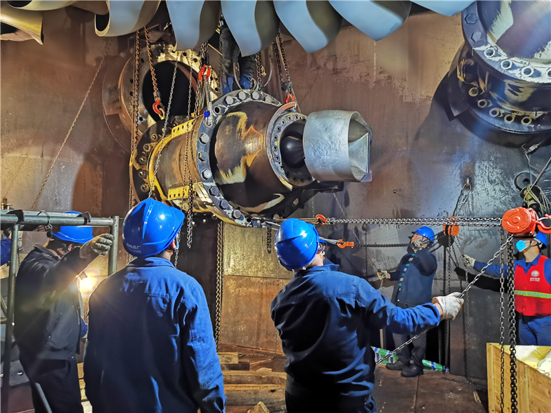 流域梯級電站噴針、折向器投產至今已連續(xù)運行十多年,設備老化、故障率攀升。為保障機組安全穩(wěn)定經濟運行,提高設備檢修質量和效率,在“科技引領、創(chuàng)新發(fā)展”理念指導下,田灣河公司率先啟動了大發(fā)2號機組噴針、折向器技改項目。項目初期,設備設計制造缺陷和安裝工藝問題一度使得技改工作陷入僵局。面對層層技術難題,檢修人員并沒有畏懼與退縮,反倒激發(fā)出昂揚的斗志,一方面精確測量記錄數(shù)據(jù),確保安裝工藝精準無誤;一方面憑借多年實戰(zhàn)經驗積極協(xié)調優(yōu)化設計,確保噴針動作及實驗滿足運行要求。項目實施過程中,檢修人員夜以繼日,攻堅克難,一天一個節(jié)點,最終2號機組折向器動作工況完全滿足設計要求,2號機組噴針油壓、水壓等滲漏試驗全部合格,噴針、折向器改造工作圓滿完成。
