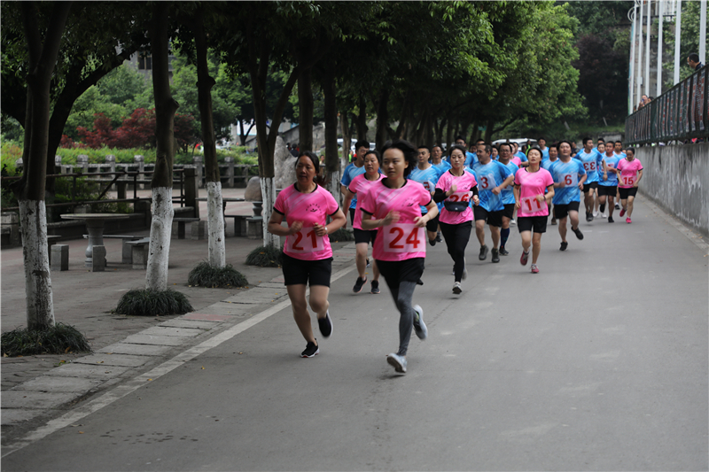 嘉陽(yáng)集團(tuán)職工公路越野賽已連續(xù)開展33年,從關(guān)愛職工身體健康出發(fā),成為嘉陽(yáng)每年重要的企業(yè)文化活動(dòng)項(xiàng)目。今年的活動(dòng)在往年的基礎(chǔ)上有不少新的變化,隊(duì)員統(tǒng)一著裝、健身跑距離加長(zhǎng),全程首次啟用航拍加大宣傳展示力度,讓活動(dòng)變得更加有聲有色。參加競(jìng)技跑的隊(duì)員們?cè)缭绲貋淼奖荣悎?chǎng)地官斗山足球場(chǎng)集合,簽到領(lǐng)取號(hào)牌,伸伸胳膊、抬抬腿認(rèn)真做著賽前準(zhǔn)備。早上7點(diǎn)30分,裁判員的發(fā)令槍響,15名女職工與21名男職工同步起跑奮力奔跑展開4公里越野,這其中有不少愛好跑步的年輕人、也有著喜歡運(yùn)動(dòng)多次參賽的老將。比賽線路與往年大致相同,從足球場(chǎng)起跑一路向白果村岔路口(中轉(zhuǎn)點(diǎn)),途經(jīng)集福橋等上坡下坡路段,選手需要在中轉(zhuǎn)站取回中轉(zhuǎn)牌后折返,回到足球場(chǎng)繞場(chǎng)一周至終點(diǎn)。同時(shí),各單位組成的方陣也集結(jié)完畢,在此等候、迎接勝者歸來,同時(shí)也為各自參賽隊(duì)員搖旗納喊。54歲的老將,來自綜合服務(wù)公司的職工龍安明率先沖破終點(diǎn),勇奪男子組“競(jìng)技跑”第一名,他跑出了18分13秒97的好成績(jī),把第二名年輕選手嘉陽(yáng)煤礦的肖虹強(qiáng)足足甩了200米開外;嘉陽(yáng)煤礦職工梁正會(huì)獲得女子組“競(jìng)技跑”第一名,21分38秒16,這也是她連續(xù)5次獲得女子組冠軍。男女各前8名選手也在大家注視的目光下陸續(xù)回到了終點(diǎn)。集團(tuán)公司總經(jīng)理范勤英為獲得女子組“競(jìng)技跑”的前8名選手頒獎(jiǎng),集團(tuán)公司黨委書記、董事長(zhǎng)杜勤為男子組“競(jìng)技跑”的前8名選手頒獎(jiǎng)。