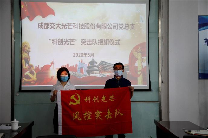 會上分別對人工智能突擊隊、監(jiān)控系統(tǒng)突擊隊、監(jiān)控系統(tǒng)突擊隊、地鐵電力監(jiān)控突擊隊、生產保障突擊隊、風控突擊隊、工程突擊隊、技術支持突擊隊等8個突擊隊進行了授旗,并向由綜合管理部及后勤服務崗組成的志愿者服務隊授旗。