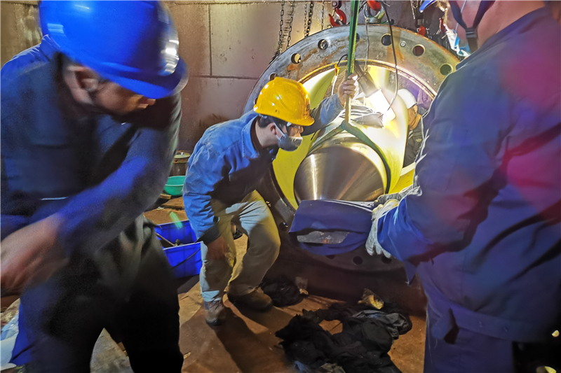 一、狠抓安全文明生產(chǎn)不放松。本年度流域三站機(jī)電設(shè)備春檢主要項(xiàng)目指令包含五條220KV線路及相應(yīng)設(shè)備年檢預(yù)試、一臺機(jī)組A修、兩臺球閥及液壓系統(tǒng)A修、兩臺機(jī)組C修、三臺噴針分解檢修、三臺機(jī)組D修、三站壓力鋼管充放水配合操作和技改項(xiàng)目,可謂工作戰(zhàn)線廣、任務(wù)重。針對各項(xiàng)檢修任務(wù),田灣河公司堅(jiān)持強(qiáng)化內(nèi)部管理:一是明確各專業(yè)檢修任務(wù),精細(xì)部署各項(xiàng)任務(wù)指令操作;二是要求各班組高度重視作業(yè)安全,牢固樹立“安全第一”的理念,嚴(yán)格遵守各項(xiàng)規(guī)章制度,嚴(yán)格執(zhí)行并按時(shí)開展班前、班后會和安全技術(shù)交底活動;三是要求各班組嚴(yán)格落實(shí)各級人員的安全責(zé)任制,做好作業(yè)危險(xiǎn)源辨識,確保人身及設(shè)備安全;四是加強(qiáng)完善檢修可視化看板管理工作,讓檢修管理程序化;五是做到設(shè)備隔離防護(hù)到位、工具工件擺放到位,力求人員、設(shè)備、環(huán)境的和諧共存;六是嚴(yán)格執(zhí)行工具、零件、油水“三不落地”檢修規(guī)定,做到工完料盡場地清。