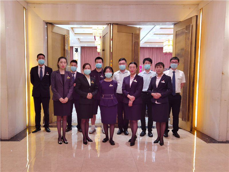 在支援工作過程中,每名隊(duì)員均以高標(biāo)準(zhǔn)嚴(yán)格要求自己,全力配合做好了兩項(xiàng)婚宴的看臺(tái)、接待、傳菜、翻臺(tái)等工作。負(fù)責(zé)看臺(tái)接待的隊(duì)員時(shí)刻關(guān)注客人需求,服務(wù)熱情周到,負(fù)責(zé)傳菜的隊(duì)員往返于后廚及宴會(huì)現(xiàn)場(chǎng),保證了菜品出菜的速度和質(zhì)量。