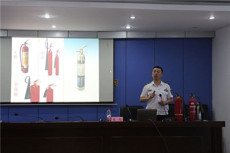 張茂教官以《消除安全隱患,筑牢安全防線(xiàn)》為題,以樂(lè)山、峨眉近年來(lái)發(fā)生的多起火災(zāi)為實(shí)例,講述了火災(zāi)帶給人們的慘痛教訓(xùn),并就如何做好火警報(bào)警、崗位火災(zāi)預(yù)防事項(xiàng)進(jìn)行了講解,介紹了救災(zāi)和逃生要領(lǐng)以及滅火器材的功能和使用方法,并對(duì)消防器材的使用在現(xiàn)場(chǎng)進(jìn)行了親身示范。
