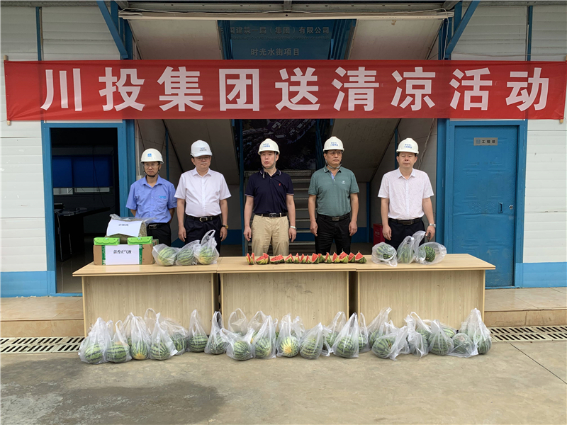 7月15日,川投集團(tuán)安全環(huán)保部部長(zhǎng)陶世賢帶隊(duì)到房地產(chǎn)公司“時(shí)光水街”項(xiàng)目開(kāi)展防汛減災(zāi)、安全生產(chǎn)大檢查和送清涼慰問(wèn)活動(dòng)。房地產(chǎn)公司總工程師鄧吉清,總經(jīng)理助理、川投幸福公司執(zhí)行董事兼總經(jīng)理龍武陪同。