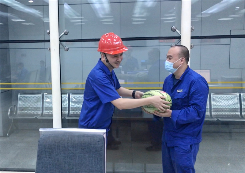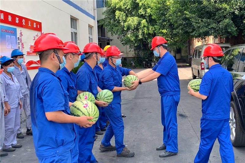 近期,瀘州持續(xù)晴熱高溫天氣,最高溫度達40攝氏度。8月6日下午,川南發(fā)電公司黨委書記、董事長劉勝金,黨委副書記、總經(jīng)理陳嵩率領導班子成員分兩組深入生產(chǎn)現(xiàn)場,看望慰問高溫下堅守崗位的一線干部職工,對廣大職工的辛勤付出表示感謝,并專門送上解暑西瓜。