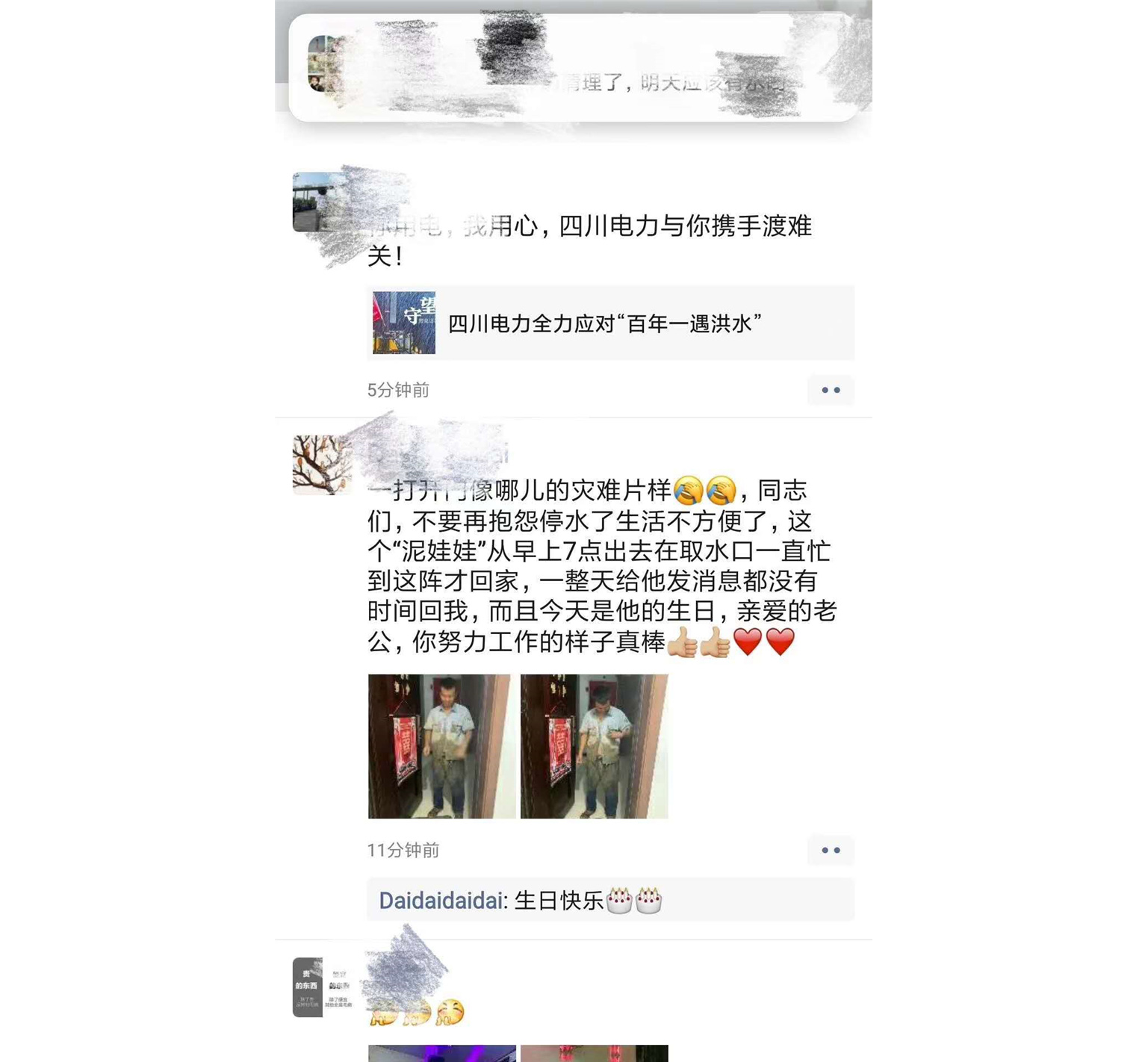 在田東同志結(jié)束搶險(xiǎn)工作返回家中作短暫休息后不久,一條由田東妻子發(fā)出的信息迅速傳遍了川投水務(wù)人的朋友圈。這時(shí),大家才知道搶險(xiǎn)當(dāng)日竟然是這個(gè)在拖著疲憊的身軀、帶著滿身泥濘邁進(jìn)家門、被家人形容為“像是災(zāi)難片里的泥娃娃”的生日。而全身心投入搶險(xiǎn)工作的田東卻早已忘記了自己的生日,面對親人飽含理解支持與心疼的擁抱,他的眼睛紅了,而這一刻,眼睛紅了的又豈止是田東和他的家人們呢?