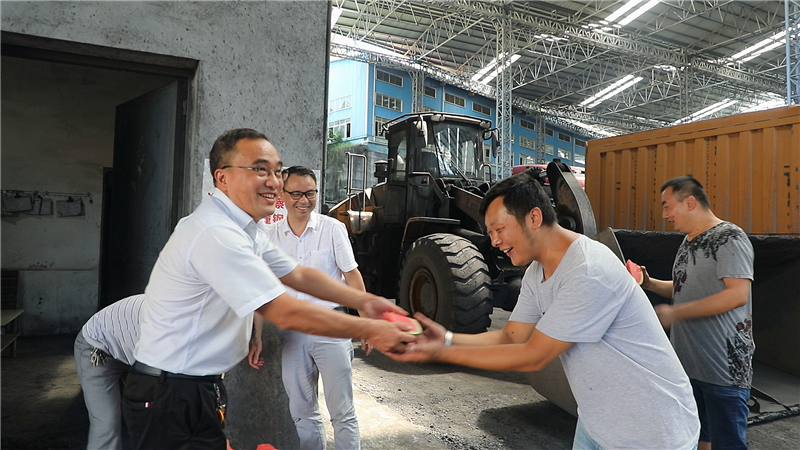 8月26日,黨委書記、董事長(zhǎng)杜勤一行到基層送清涼,看望慰問奮戰(zhàn)在高溫烈日下的職工,為他們送去組織的關(guān)心和問候。