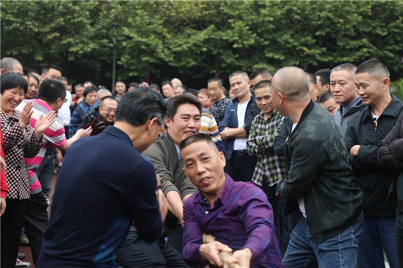 28日,進(jìn)行了職工拔河比賽,來自各隊(duì)站的16支男子代表隊(duì),4支女子代表隊(duì),共300人參加比賽。在抽簽確定對(duì)手后,15名隊(duì)員各就各位,雙手握緊麻繩,雙腳用力蹬地,身體微微后傾,做好迎戰(zhàn)準(zhǔn)備。隨著裁判員一聲哨響,隊(duì)員們使出渾身力氣拼命向后拽。雙方你爭我奪各不相讓,中界點(diǎn)的紅繩在兩支隊(duì)伍的角力下左偏右擺;兩旁的啦啦隊(duì)不斷鼓勁打氣,加油助威聲此起彼伏……三局二勝定輸贏,相逢一笑兩者歡。