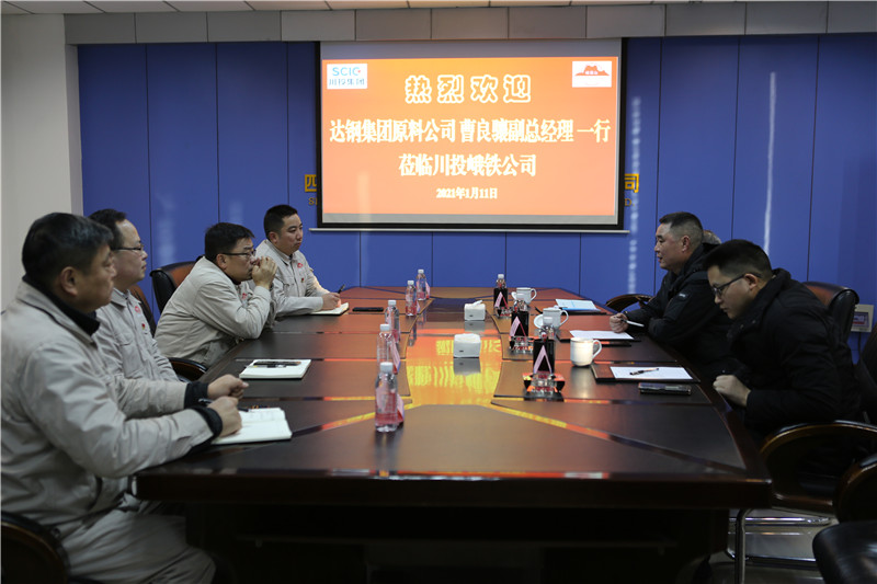 近日,川投峨鐵公司黨委副書記、總經(jīng)理陳新龍?jiān)诠?08會議室會見了達(dá)鋼集團(tuán)原料部經(jīng)理曹良驤一行,雙方就推進(jìn)戰(zhàn)略合作框架協(xié)議、業(yè)務(wù)布局進(jìn)行了深入交流。