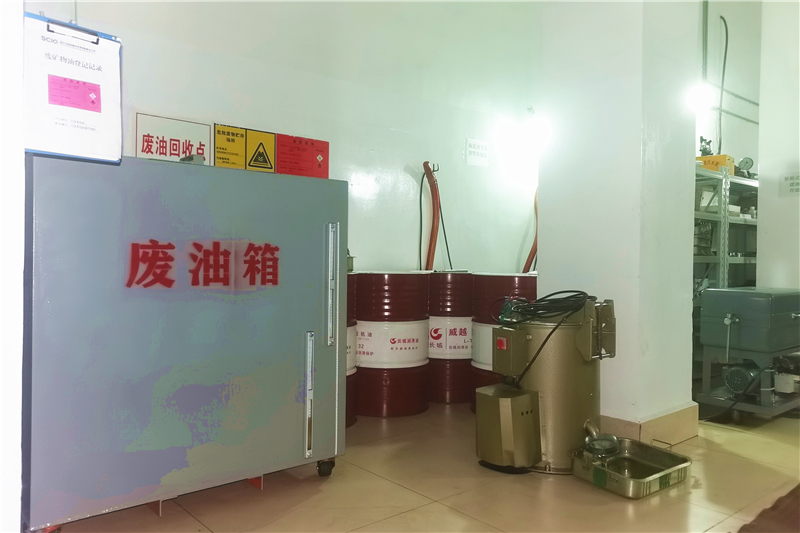 為此,公司通過群策群力,依托“環(huán)境治理”科研項目,結合每年油污垃圾和廢油產生量,合理設計制作了一套廢油收集箱和高速離心甩油機。廢油收集箱具備可視化觀察功能,使得在生產任務中所產生的潤滑油、真空油、空壓機油等不可回收的廢油能夠得到統(tǒng)一定置存放、定期統(tǒng)計回收的目的。破布、海綿、吸油棉等油污垃圾,通過高速離心甩油機脫離90%以上的油份后,再進行統(tǒng)一存放,不僅減少了蛇、蟲、鼠、蟻等蟲害侵擾和有害細菌的滋生傳播,而且海綿、吸油棉等吸油布還能實現(xiàn)二次利用,有效降低了公司拭油耗材的生產成本。
