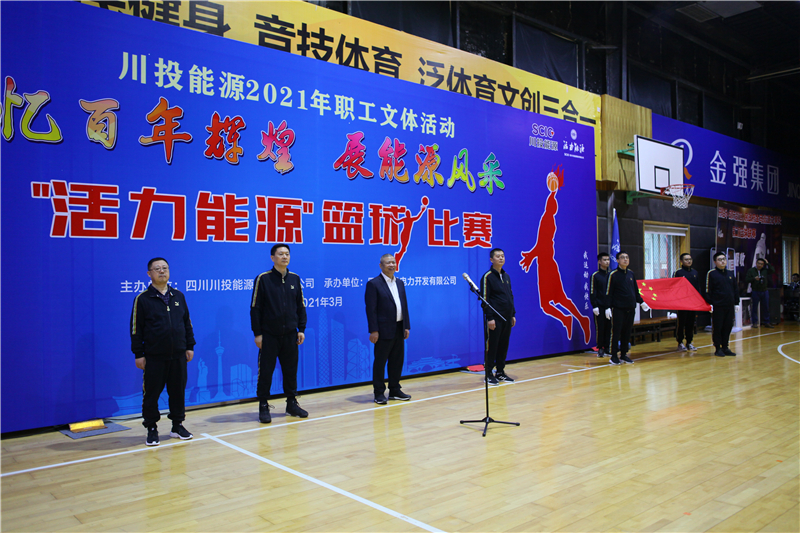 活動開始,伴隨著運動員進行曲,國旗方隊和參加隊伍依次進入會場。隨后舉行了莊嚴的升國旗、唱國歌儀式,運動員代表、裁判員代表先后宣誓。川投電力公司黨委書記、總經(jīng)理魏華代表此次籃球比賽的承辦方作簡要發(fā)言。