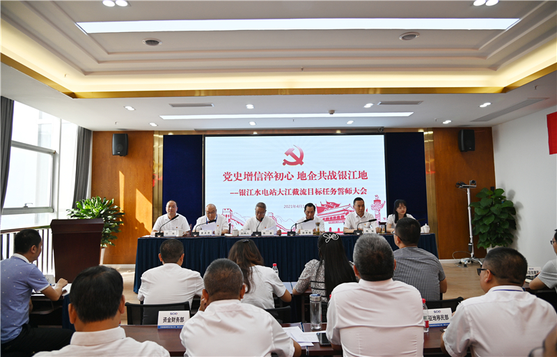 2021年是川投能源攀水公司金沙江銀江水電站奮力實(shí)現(xiàn)大江截流目標(biāo)、力爭(zhēng)2025年首臺(tái)機(jī)組發(fā)電的關(guān)鍵之年,為了確保大江截流這一重要目標(biāo)工期的按期達(dá)成,4月16日,川投能源攀水電公司和攀枝花市東區(qū)區(qū)委、區(qū)政府組織召開(kāi)了銀江水電站大江截流目標(biāo)任務(wù)誓師會(huì)。