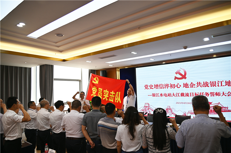 會(huì)上,全體參會(huì)人員共同學(xué)習(xí)了市委書(shū)記李正紅在市級(jí)領(lǐng)導(dǎo)干部和縣級(jí)主要負(fù)責(zé)同志讀書(shū)班暨市委理論學(xué)習(xí)中心組專(zhuān)題學(xué)習(xí)(擴(kuò)大)會(huì)議上的講話精神;蔡承德宣讀了銀江水電站項(xiàng)目建設(shè)黨員突擊隊(duì)人員名單;徐孝剛與陳康共同向黨員突擊隊(duì)授旗并簽訂目標(biāo)承諾書(shū);全體突擊隊(duì)隊(duì)員在隊(duì)旗前進(jìn)行了莊重宣誓。