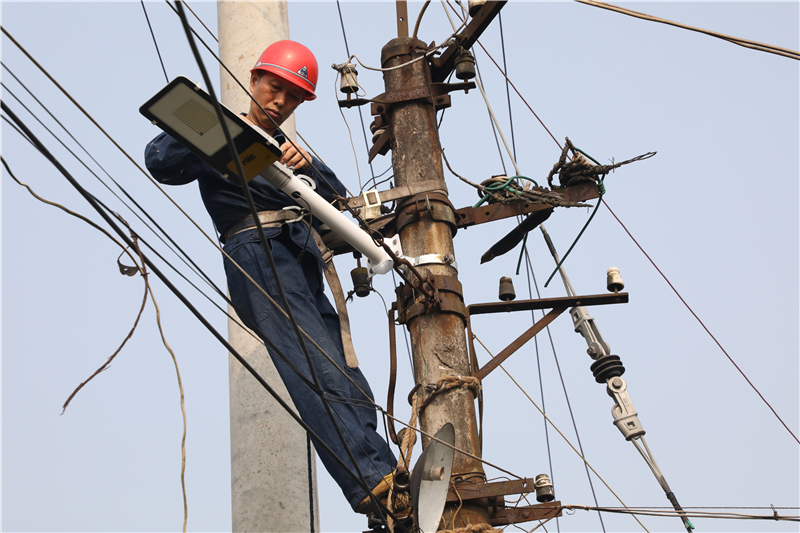 據(jù)石溪7號房居民反映,因去年電力線路改造后,機(jī)電分公司后門到石溪小火車車站鐵路沿線的路燈已不能使用,給周邊居民夜間出行造成了很大的困擾。機(jī)電分公司黨支部在集團(tuán)公司黨委的部署下,立即行動起來,組織電工班骨干一起協(xié)商解決這一難題,考慮到電源及后期電費(fèi)問題,安裝太陽能路燈是首選方案。5月10日一大早,電工班張志剛師傅就爬上了電桿,頭頂烈日開始安燈工作,汗水很快浸透了他的工作服,經(jīng)過一天辛勤的工作,6盞太陽能路燈終于安裝完畢。安燈工作受到沿線居民的高度關(guān)注,大家紛紛豎起大拇指點(diǎn)贊。