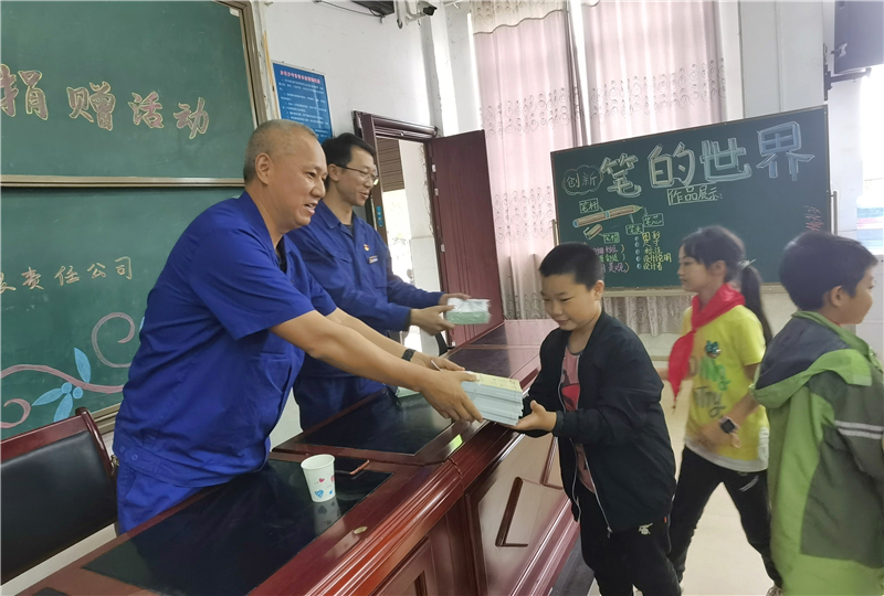 隨后,經(jīng)營(yíng)管理黨支部將準(zhǔn)備好的作業(yè)本、拼音本、鉛筆、套尺、跳繩和經(jīng)典圖書(shū)等學(xué)習(xí)用品用具發(fā)給了學(xué)生代表。