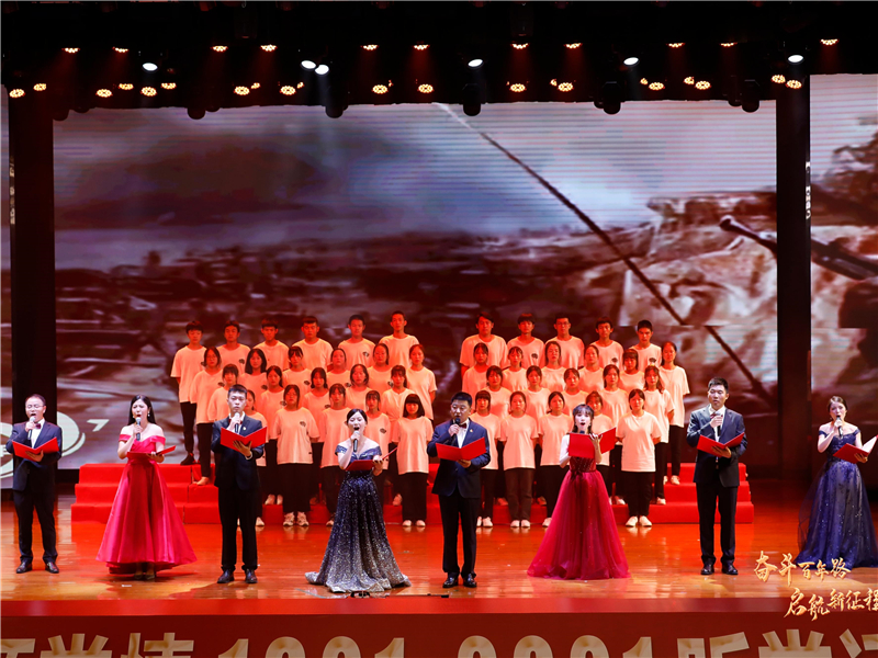文藝演出在舞蹈《鮮紅的旗幟》中拉開帷幕。舞臺(tái)背景LED大屏幕上,一幀幀黑白影像,帶著觀眾跨越歷史時(shí)空,回到了戰(zhàn)火紛飛的年代,再現(xiàn)了中國共產(chǎn)黨人不怕犧牲、不怕吃苦、不屈不撓的革命精神,全面展現(xiàn)中國共產(chǎn)黨100年來通過艱苦卓絕的不懈奮斗,實(shí)現(xiàn)中國滄桑巨變的恢弘歷史畫卷。隨后,學(xué)院黨委書記、理事長張中偉攜教職員工以詩言志,學(xué)院院長鄭立舸,黨委副書記曹華攜教職員工以歌抒懷,精心編排的節(jié)目瞬間點(diǎn)燃現(xiàn)場,贏得了在場師生的陣陣掌聲。