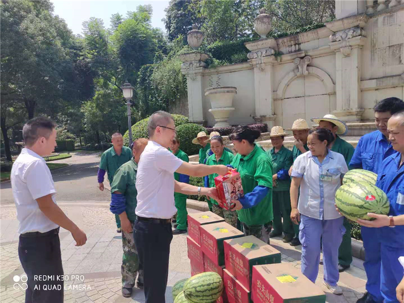 為切實開展防暑降溫工作,確保公司暑汛期工作持續(xù)平穩(wěn),根據(jù)川投集團工會指示精神和公司工會工作部署。7月21日,公司董事長林光友、總經(jīng)理張小平、副總經(jīng)理陳科文一同來到物業(yè)服務(wù)中心、園林班一線開展“關(guān)愛職工 夏送清涼”慰問活動。