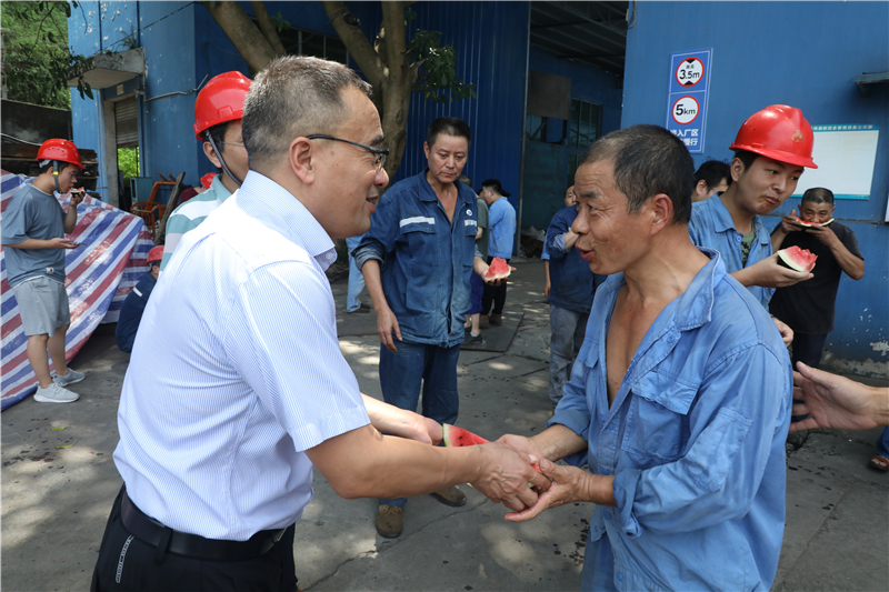 7月20日下午,機(jī)關(guān)第一黨支部和機(jī)關(guān)一分會黨員職工代表前往礦山機(jī)電制造維修分公司,向奮戰(zhàn)在高溫一線的職工送去西瓜、礦泉水,表達(dá)組織的關(guān)心、關(guān)愛,并檢查防暑降溫工作落實(shí)情況。