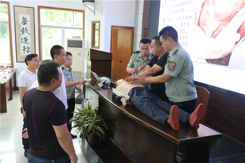 副主任醫(yī)師宋賢章為大家詳細(xì)講解了《中暑的預(yù)防和救治》。什么是中暑?中暑的3種癥狀:先兆中暑、輕度中暑、重癥中暑;中暑急救方法“六字訣”:搬、擦、服、掐、轉(zhuǎn)。宋醫(yī)生還分享了預(yù)防中暑的一些生活常識(shí):夏季要保證充足的睡眠、適當(dāng)飲水補(bǔ)充水分、鹽分,注意健康飲食增加營(yíng)養(yǎng)、備好防暑藥品等等。在急救技能演練培訓(xùn)環(huán)節(jié),礦山救護(hù)隊(duì)的兩位培訓(xùn)教師用人體模型向大家演示了心肺復(fù)蘇、嗆水急救的正確操作手法,并指導(dǎo)大家上手操作。