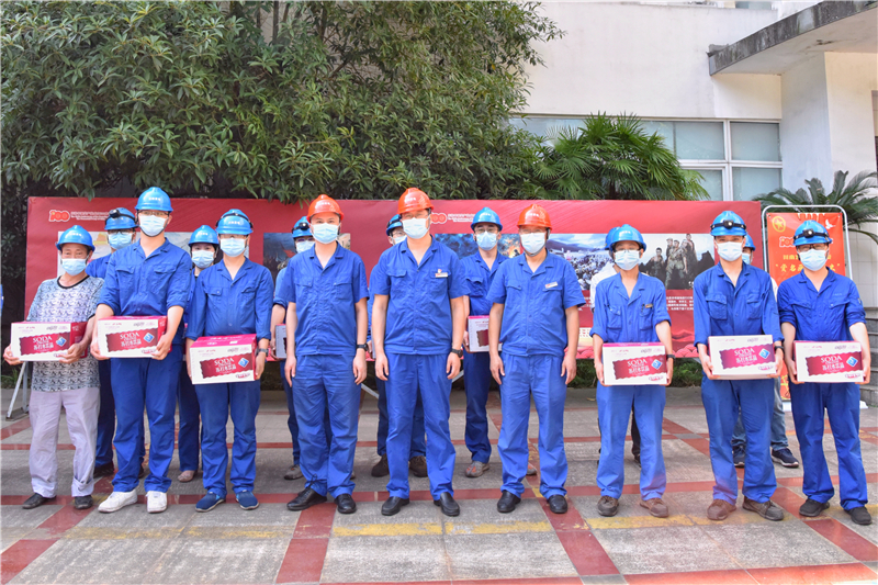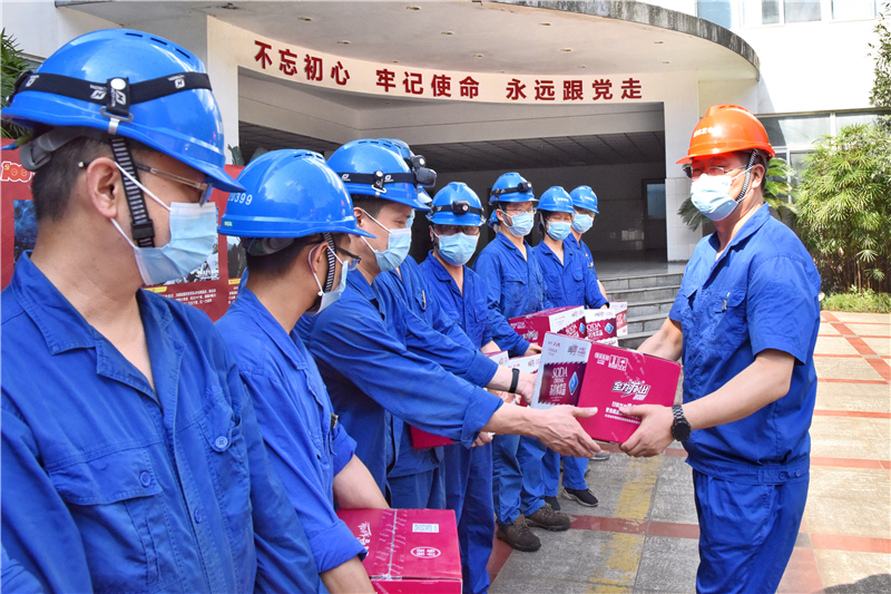 炎炎夏日送清涼、箱箱飲品暖人心。7月29日,公司開展“夏送清涼”活動(dòng)。公司黨委書記、董事長劉勝金,黨委副書記、總經(jīng)理陳嵩,黨委副書記、工會(huì)主席黃松深入現(xiàn)場,代表公司慰問奮戰(zhàn)在高溫酷暑下的公司一線員工,送上清涼,送去關(guān)愛。