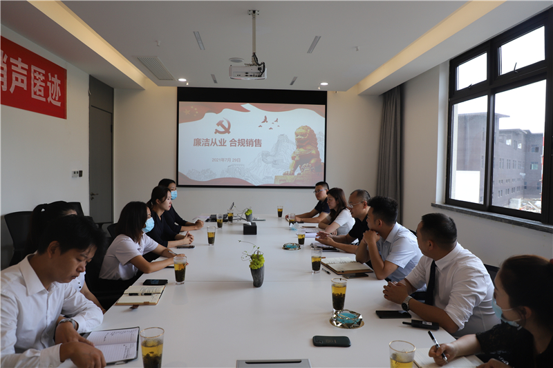 會(huì)上,公司紀(jì)檢人員以“廉潔從業(yè) 合規(guī)銷售”為題從國(guó)家法律法規(guī)、樹(shù)立廉潔從業(yè)意識(shí)、地產(chǎn)營(yíng)銷領(lǐng)域典型違規(guī)腐敗案例等幾個(gè)方面,結(jié)合公司實(shí)際對(duì)全體營(yíng)銷人員進(jìn)行了廉潔從業(yè)警示教育培訓(xùn)。
