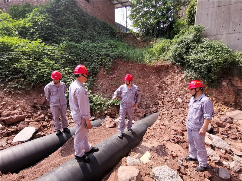 公司黨委副書記、總經(jīng)理梁紅兵帶隊深入現(xiàn)場開展“拉網(wǎng)式”排查,對廠區(qū)重點管控區(qū)域、圍墻、邊坡、排水溝進行檢查,并對廠外天然氣管線、取水管線、架空線路等重點區(qū)域進行實地查看,對取水泵房圍墻外滑坡區(qū)域加固情況進行了重點檢查,要求現(xiàn)場值班人員要重點監(jiān)控滑坡區(qū)域,隨時跟蹤趨勢變化情況,有異常時及時避險,并匯報處置。在檢查取水管線時,重點查看了天河污水處理廠處取水管線上覆土被洪水沖走管段,梁紅兵要求相關(guān)職能部門,要及時跟地方政府相關(guān)部門溝通協(xié)調(diào),盡快恢復(fù)管道裸露部分覆土事宜。