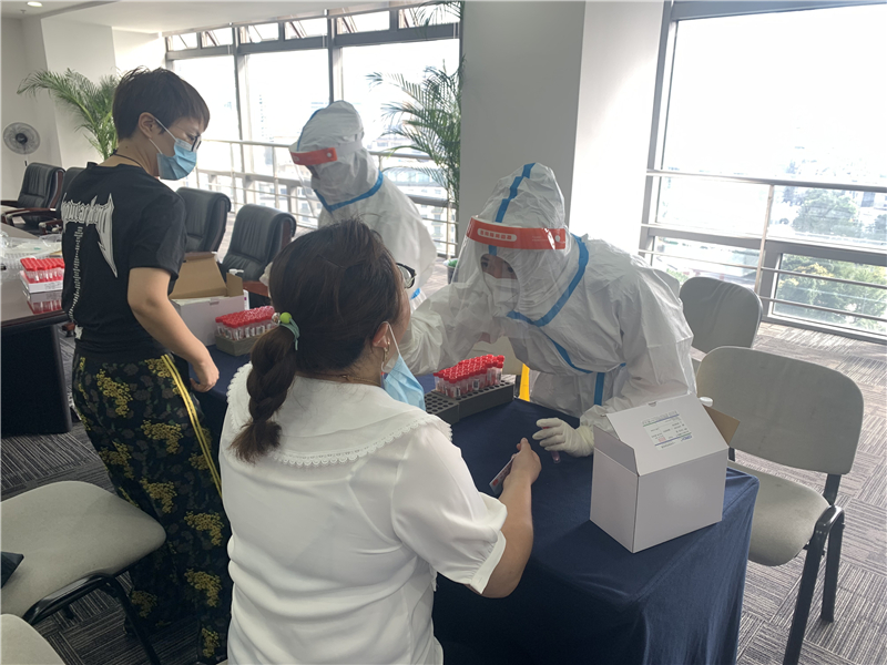 抗擊疫情顯擔(dān)當(dāng),服務(wù)集團員工更貼心。5月至6月,華西牙科所屬四川口腔醫(yī)院醫(yī)護連續(xù)奮戰(zhàn)42天,助力接種新冠疫苗9700人次。特別是7月新冠病毒變異株“德爾塔”來勢洶洶,四川口腔醫(yī)院黨員醫(yī)護人員沖鋒在前,和時間賽跑,在一天內(nèi)圓滿完成川投集團及各所屬公司近700名員工的核酸檢測工作。