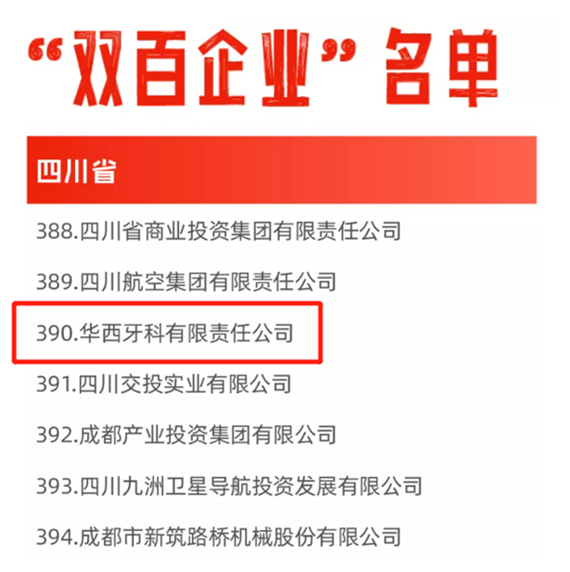 根據(jù)國企改革三年行動和“雙百企業(yè)”推進計劃和前期試點工作評估,國務(wù)院國資委官網(wǎng)日前公布了最新的“雙百企業(yè)”名單,川投集團控股的華西牙科有限責任公司持續(xù)入列國企改革“雙百行動”四川省企業(yè)試點單位。