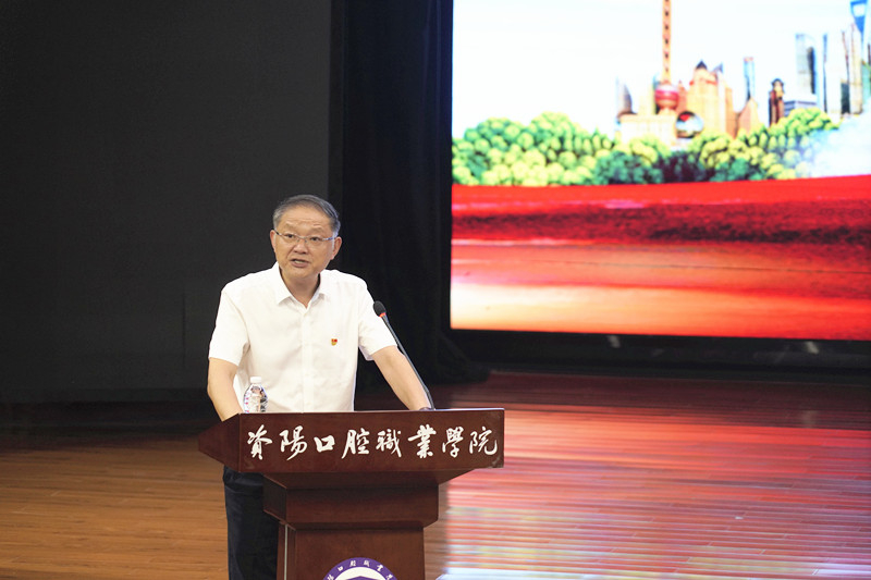 院長(zhǎng)鄭立舸在講話(huà)中表示,在黨的旗幟指引下,在高等職業(yè)教育成為國(guó)家行動(dòng)的大環(huán)境中,面對(duì)世界百年大變局的歷史機(jī)遇,學(xué)院全體師生要時(shí)刻汲取和更新知識(shí),在擔(dān)當(dāng)中歷練,在感悟中成長(zhǎng),教好書(shū),讀好書(shū),不辜負(fù)作為資陽(yáng)口腔職業(yè)學(xué)院事業(yè)發(fā)展參與者和受益者的榮耀。