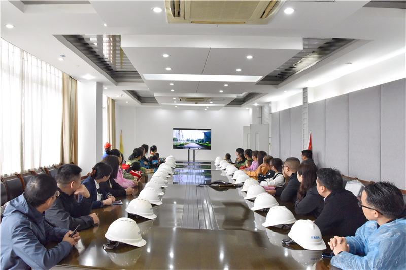 研學(xué)體驗團一行在行政辦公樓三樓會議室,觀看了公司宣傳片,對公司黨的建設(shè)、生產(chǎn)經(jīng)營、環(huán)境保護等情況進行了解。隨后,安全健康環(huán)保監(jiān)察部工作人員現(xiàn)場演示了安全帽的正確佩戴方式,指導(dǎo)大家正確佩戴好安全帽并詳細講解了進入生產(chǎn)現(xiàn)場的安全注意事項。