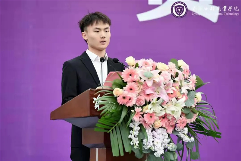 查華洋,2019級(jí)醫(yī)療設(shè)備應(yīng)用技術(shù)專業(yè)。資陽口腔職業(yè)學(xué)院首屆學(xué)生中第一位國家獎(jiǎng)學(xué)金獲得者,曾作為優(yōu)秀學(xué)生代表在2021年開學(xué)典禮上進(jìn)行發(fā)言。談到自己的偶像科比時(shí),他的眼里閃著光,他說,我也見過凌晨四點(diǎn)的口職院,你們信嗎?