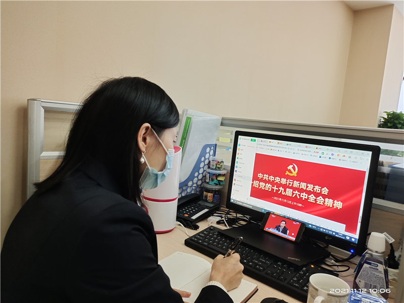 通過觀看發(fā)布會,全體黨員職工深刻認識到,確立習近平同志黨中央的核心、全黨的核心地位,確立習近平新時代中國特色社會主義思想的指導地位,對新時代黨和國家事業(yè)發(fā)展、對推進中華民族偉大復興歷史進程具有決定性意義。在建黨百年之際,黨中央召開六中全會,全面總結黨的百年奮斗重大成就和歷史經驗,是鄭重的歷史性、戰(zhàn)略性決策,體現了我們黨重視和善于運用歷史規(guī)律的高度政治自覺,體現了我們黨牢記初心使命、繼往開來的自信和擔當。