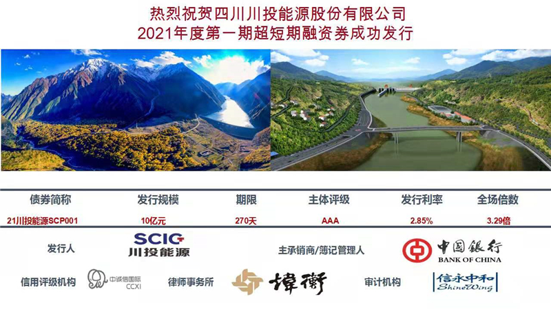 11月8日,川投能源公司首期270天超短期融資券10億元成功發(fā)行,利率2.85%(低于部分當日同期銀行業(yè)同業(yè)存單利率)。