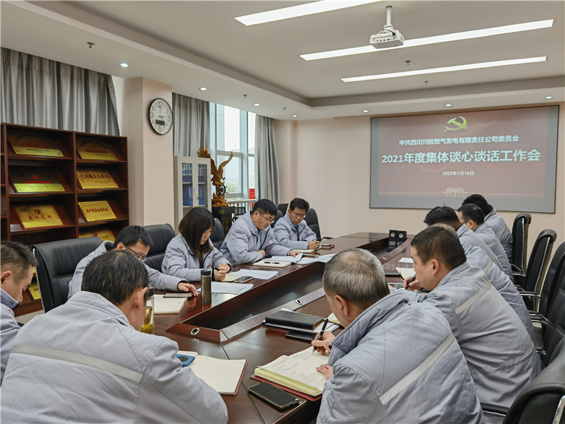 1月10日,川投氣電公司黨委書記、董事長姚欣與公司領(lǐng)導(dǎo)班子成員、各部門負(fù)責(zé)人進(jìn)行集體談心談話。
