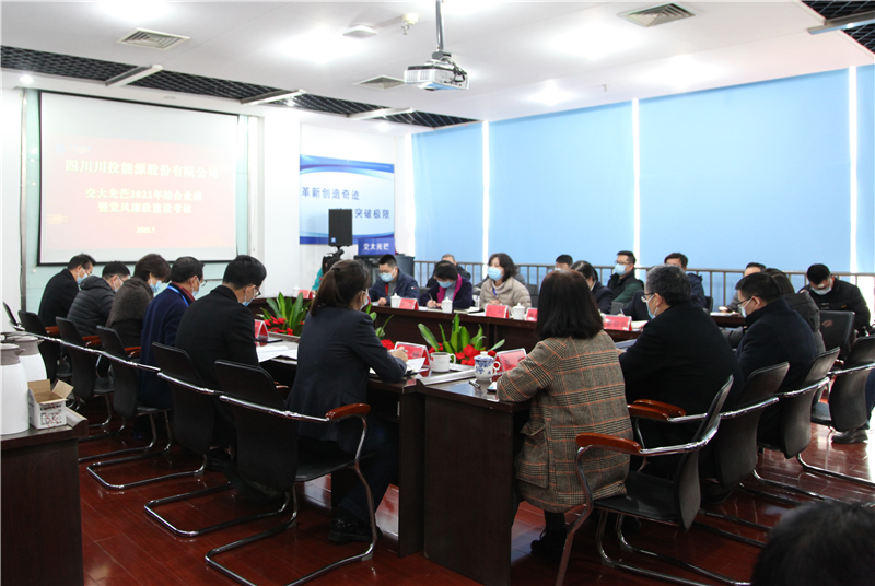 根據(jù)川投能源2021年度考核工作的統(tǒng)一部署,近日,川投能源黨委委員、財(cái)務(wù)總監(jiān)、考核組長(zhǎng)劉好率隊(duì)赴交大光芒開展2021年度綜合業(yè)績(jī)暨黨風(fēng)廉政建設(shè)考核工作。川投能源考核組、交大光芒經(jīng)營(yíng)班子、中層副職以上管理人員及一線員工代表參加考核會(huì),川投能源證券事務(wù)部、資本運(yùn)營(yíng)部經(jīng)理魯晉川主持會(huì)議。