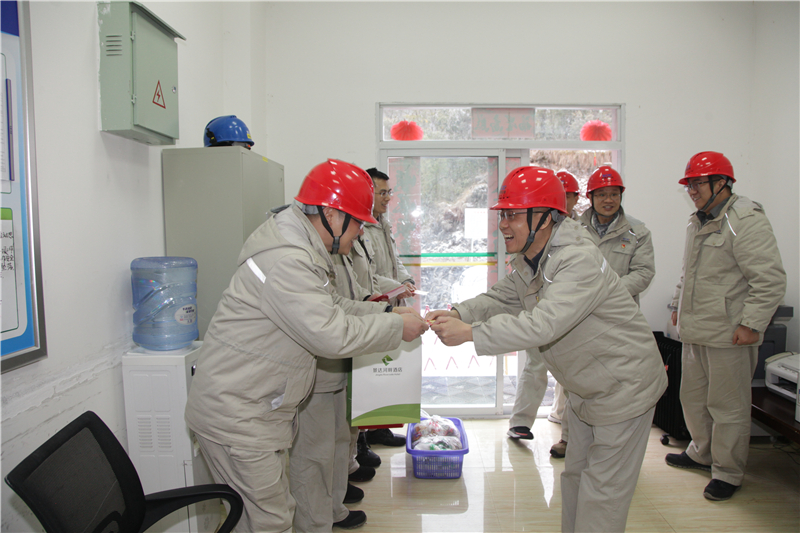 2月1日,現(xiàn)場值班領導、黨委委員、財務總監(jiān)毛建,副總工程師王勇一行對春節(jié)期間堅守電站現(xiàn)場的值班員工進行了集中慰問。迎著貢嘎山的第一縷晨曦,毛建一行向值守在仁宗海、金窩和大發(fā)廠房的員工送去了公司的問候,以及精心準備的新年禮包。慰問過程中,毛建還與值守員工詳細交流了春節(jié)值班期間工作、生活上的情況。