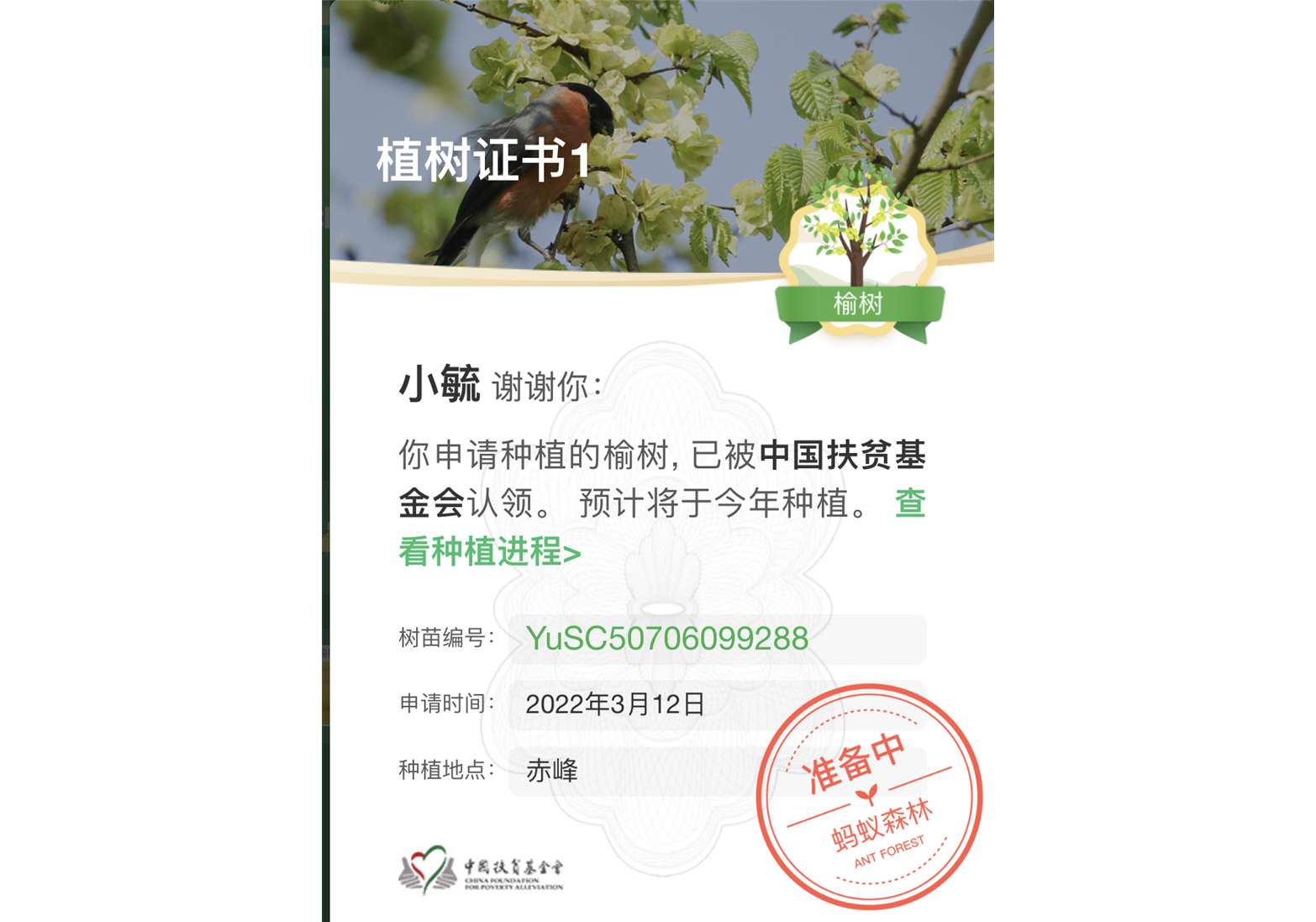 值此第44個(gè)植樹節(jié)來臨之際,3月12日,川投峨鐵公司團(tuán)委組織參加了共青團(tuán)中央舉辦的“低碳生活,云上護(hù)綠”義務(wù)植樹行動(dòng),川投峨鐵共青團(tuán)第一、第二團(tuán)支部全體團(tuán)員通過手機(jī)“云種植”楊柴、花棒、榆樹等樹苗11棵,參與保護(hù)三江源、大熊貓國家公園等保護(hù)地16塊。