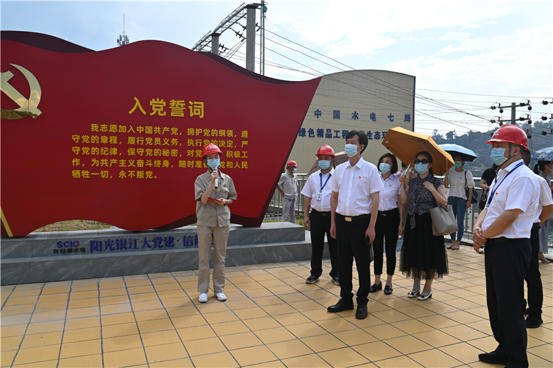 田巨龍一行首先參觀了銀江水電站施工現(xiàn)場(chǎng)和大黨建宣傳陣地。在施工現(xiàn)場(chǎng),吳巍嶼介紹了銀江水電站的基本情況,田巨龍一行對(duì)銀江水電站成功實(shí)現(xiàn)提前一年大江截流表示充分欽佩,并表示十分期盼銀江水電站蓄水后高峽平湖、水城相融的壯觀景象。在大黨建宣傳陣地,講解員王思琪向來(lái)賓介紹了川投能源黨委“五個(gè)先鋒”黨建品牌總體要求和攀水電公司“七色陽(yáng)光大黨建”的實(shí)施情況。田巨龍一行表示,公司“七色陽(yáng)光大黨建”品牌特色鮮明,很好地結(jié)合攀枝花市區(qū)域特色和銀江水電站工程建設(shè)任務(wù),希望醫(yī)院黨委能進(jìn)一步加強(qiáng)與攀水電黨總支的交流學(xué)習(xí)。