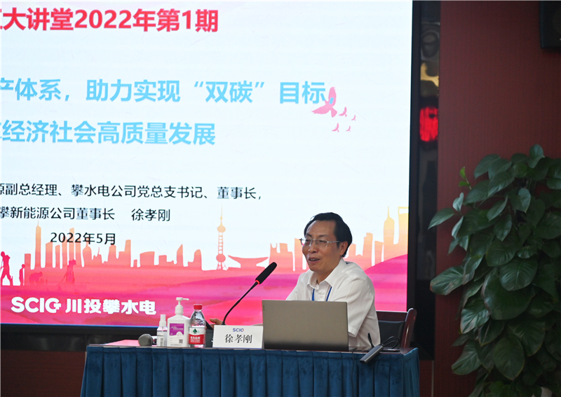 活動(dòng)中,醫(yī)院急診科蘇曉勇主任、腫瘤科廖玲醫(yī)師分別以《熱愛(ài)生命,關(guān)注腫瘤》和《心肺復(fù)蘇術(shù)》為主題,為攀水電公司和參建單位員工代表帶來(lái)了的健康知識(shí)講座,并進(jìn)行了身臨其境的互動(dòng)教學(xué)。徐孝剛講授了《構(gòu)建清潔能源生產(chǎn)體系,助力實(shí)現(xiàn)“雙碳”目標(biāo),支撐經(jīng)濟(jì)社會(huì)高質(zhì)量發(fā)展》為題的主題黨課,從“碳達(dá)峰與碳中和的背景”、“雙碳目標(biāo)的形勢(shì)要求”、“清潔能源體系在雙碳目標(biāo)中的重要地位”、“構(gòu)建清潔能源生產(chǎn)體系的實(shí)施路徑及公司相關(guān)工作開(kāi)展情況”四個(gè)方面,向大家介紹了目前國(guó)家的能源發(fā)展戰(zhàn)略、發(fā)展要求和發(fā)展形勢(shì),并向大家介紹了攀水電公司和攀新能源公司相關(guān)工作的推進(jìn)情況。徐孝剛講到,公司作為能源行業(yè)的國(guó)有企業(yè),在構(gòu)建清潔能源生產(chǎn)體系的過(guò)程中責(zé)任重大、使命光榮,并號(hào)召公司黨員群眾要不忘初心、牢記使命,為實(shí)現(xiàn)雙碳目標(biāo)積極做出更大的貢獻(xiàn)。