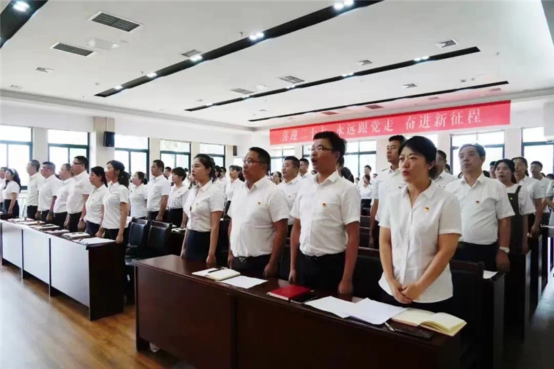 大會在雄壯的國歌聲中拉開帷幕。錚錚誓言、澎湃力量,面對鮮艷的黨旗,學院黨委書記、理事長張中偉帶領全體黨員重溫入黨誓詞:“我志愿加入中國共產黨,擁護黨的綱領,遵守黨的章程......”鏗鏘有力的宣誓,表達了新時代共產黨員的責任與擔當,許下了對黨忠誠、牢記使命的堅定承諾。