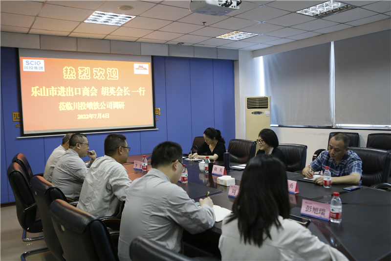 7月4日,樂山市進出口商會會長胡英、監(jiān)事長黃勇等一行3人到訪川投峨鐵公司。川投峨鐵公司黨委副書記、總經(jīng)理陳新龍,常務(wù)副總經(jīng)理李宏以及營銷總監(jiān)周全接待了來訪客人一行。