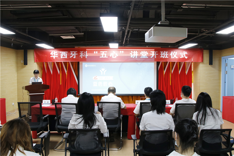 為持續(xù)深化華西牙科“五心”黨建品牌,鞏固黨史學習教育成果,提升全體黨員員工的政治素養(yǎng)和綜合素質(zhì),7月15日上午,華西牙科黨委在四川口腔醫(yī)院13樓會議室舉行“五心”講堂開班儀式暨首場專題培訓。本期主題為“秉承匠心精神,培育專業(yè)人才”——“五心”講堂之藍色匠心。華西牙科黨委書記、董事長劉凌云,黨委副書記、職工董事、工會主席金晶,黨委委員、副總經(jīng)理劉云戈,黨委委員、董事、財務總監(jiān)王海帆,副總經(jīng)理李景雨,華西牙科本部外派董監(jiān)事、所屬公司經(jīng)理層成員、員工代表等50余人參加現(xiàn)場會議和視頻會議。開班議式由華西牙科黨委副書記、職工董事、工會主席金晶主持。