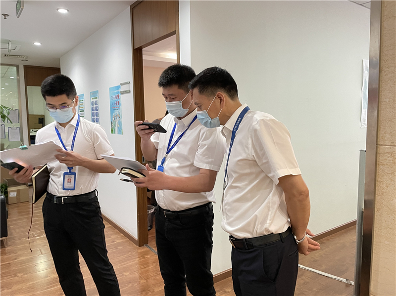 冉蘭平一行首先對(duì)川投電力的辦公區(qū)域、公共區(qū)域等關(guān)鍵點(diǎn)位進(jìn)行了檢查,并詳細(xì)查看了防疫物資儲(chǔ)備情況、疫情防控工作臺(tái)賬、人員健康登記臺(tái)賬,詢問(wèn)了個(gè)別“黃碼”人員和“軌跡重疊”人員的核酸檢測(cè)情況和居家辦公情況等。隨后,冉蘭平一行又采取“掃樓”方式,對(duì)川投大廈6樓、9樓各辦公室的疫情防控工作落實(shí)情況進(jìn)行逐個(gè)督查檢查。