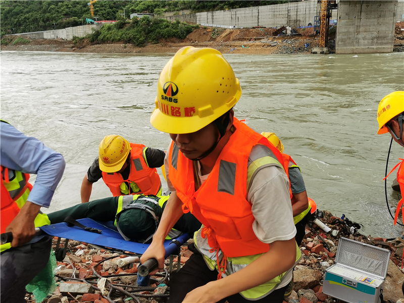 接到消息后,四川路橋立即啟動(dòng)高處作業(yè)墜落應(yīng)急預(yù)案,立即組織應(yīng)急救援隊(duì)伍趕赴事發(fā)地點(diǎn)展開(kāi)救援工作。應(yīng)急救援組將救生圈(拴有救生繩)拋向掉落人員,后勤保障組立即撥打“120”急救電話。應(yīng)急救援組利用救生繩將落水傷員救至岸邊,醫(yī)療救護(hù)組對(duì)傷員進(jìn)行初步檢查和救治,待急救車輛到達(dá)施工現(xiàn)場(chǎng)后,立即將傷員送往醫(yī)院救治。演練過(guò)程中,各應(yīng)急小組各就其位、各司其職,信息傳遞暢通無(wú)障礙,項(xiàng)目部反應(yīng)高效、準(zhǔn)確,整個(gè)演練緊張有序,演練過(guò)程嚴(yán)肅認(rèn)真,短短十幾分鐘時(shí)間,事故現(xiàn)場(chǎng)得到有效控制。演練結(jié)束,傷者成功得到救援,現(xiàn)場(chǎng)恢復(fù)可控狀態(tài),高處作業(yè)墜落應(yīng)急響應(yīng)解除。